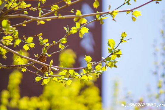 凌云路两侧新栽的梧桐树,像两排列队的士兵,等待着学子们的检阅,返青的枝丫上,已冒出绿叶儿。自然界的精灵们,演绎春天的方式也更动人心弦。突然,树林间锦鸡清脆的啼叫,穿透了蒙蒙细雨;黄莺鸣啭的歌声,飘过树梢间的清气,在空中回荡。杨柳依依,芳草嫩绿,在清雅悠然、沁人心脾的清爽景色之中,聆听着春天的脚步声,是那样的惬意、悠闲。